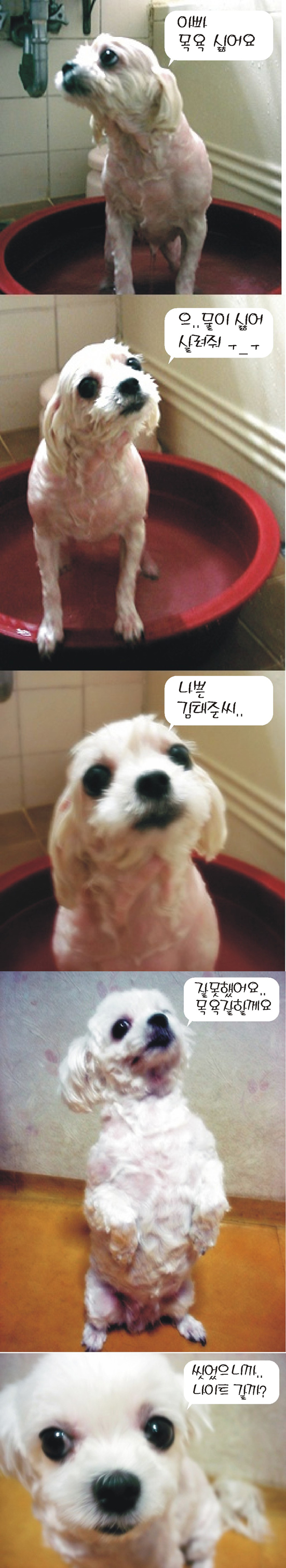 목욕시작할땐 진짜 애처로운 눈빛인데...나이트갈때의 눈빛은 초롱초롱 emoticon_001