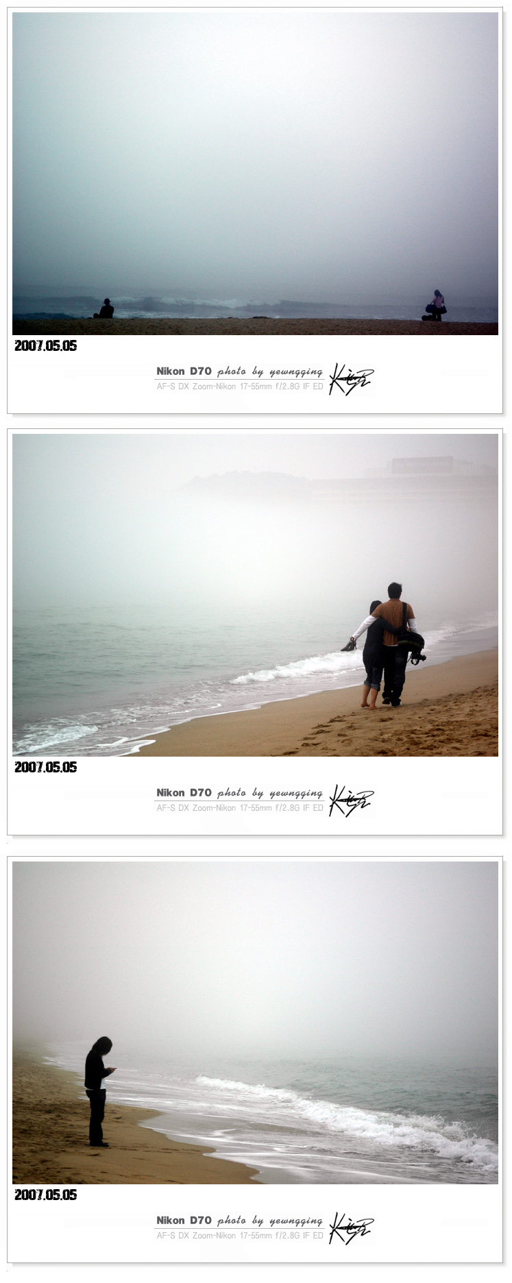 첨으로 이렇게 안개가 심하게 낀 해운대를 보네요.^^