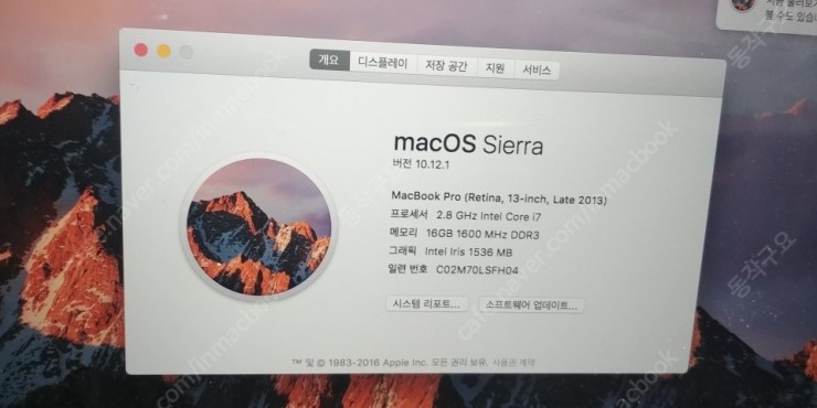 맥북프로 Retina 13인치 i7 ssd512 ram16 팜