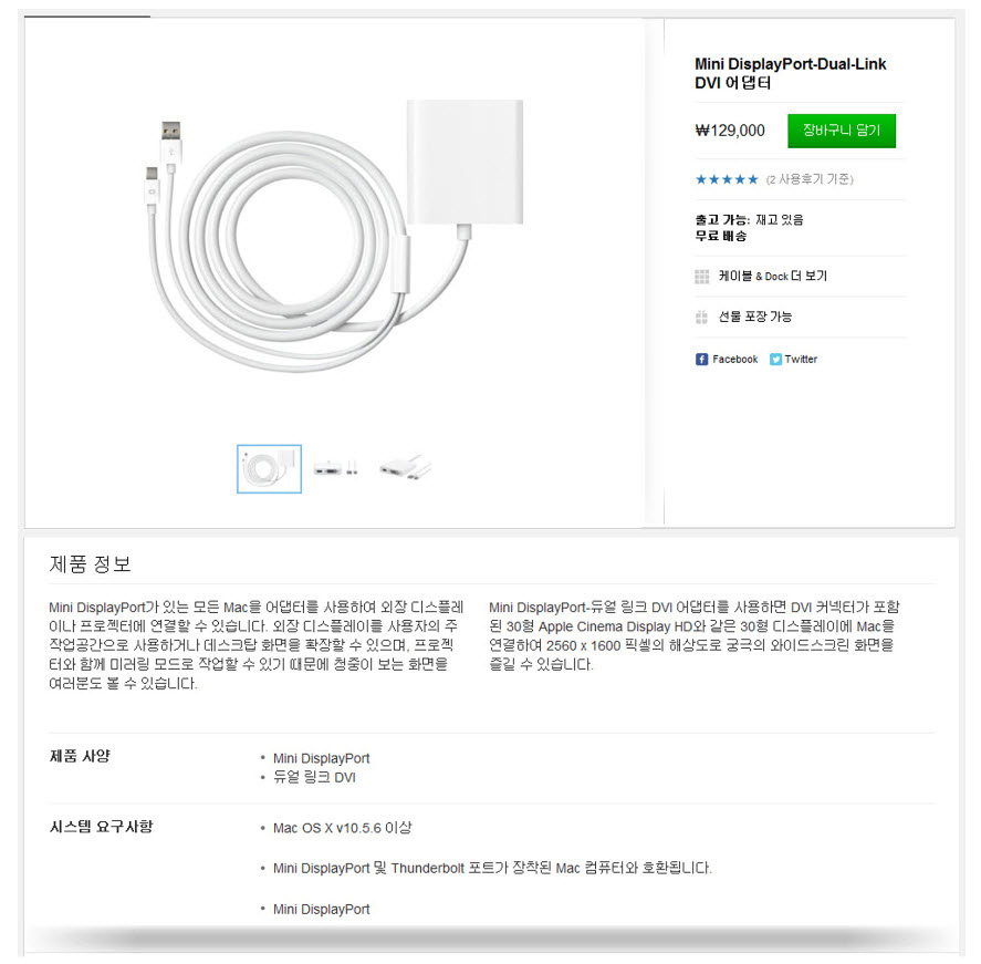 1. 물품명 :Mini DisplayPort-Dual-Link DVI 어댑터