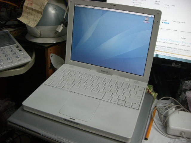 ibook g4 macbook 입니다 액정 외관 상태 매우 좋습니다 배터리 상태도 양호합니다 아답터 포함