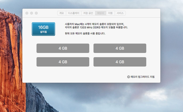 메모리를 16기가로 올렸습니다