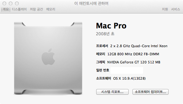 .CPU : 맥프로 2.8GHz 8코어(2x2.8GHz Quad-Core) Intel Xeon