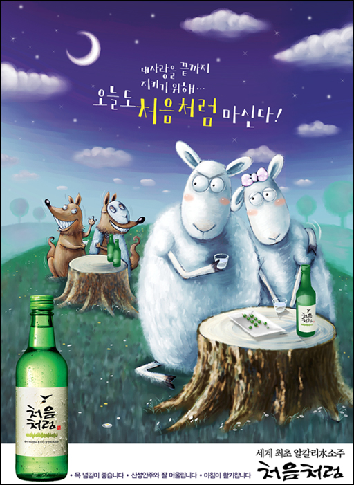 (부드러운 "처음처럼"을 마신 이들은 양처럼 순해지고