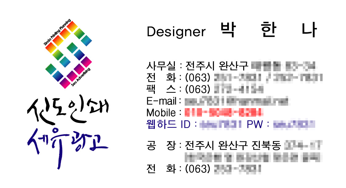작살님께서 올려주신 캘리로 작업한.. 온새미로 일반 1 9043 2009.12.16 11:08 작살님께서 올려주신 캘리로 작업한.. 저희 명함입니다. 이사하고 일하느라 명함밖에 작업을 못해서 이제야 올려드립니다. 다른것도 만약에 작업한다면 올릴께요 감사합니다. ^^