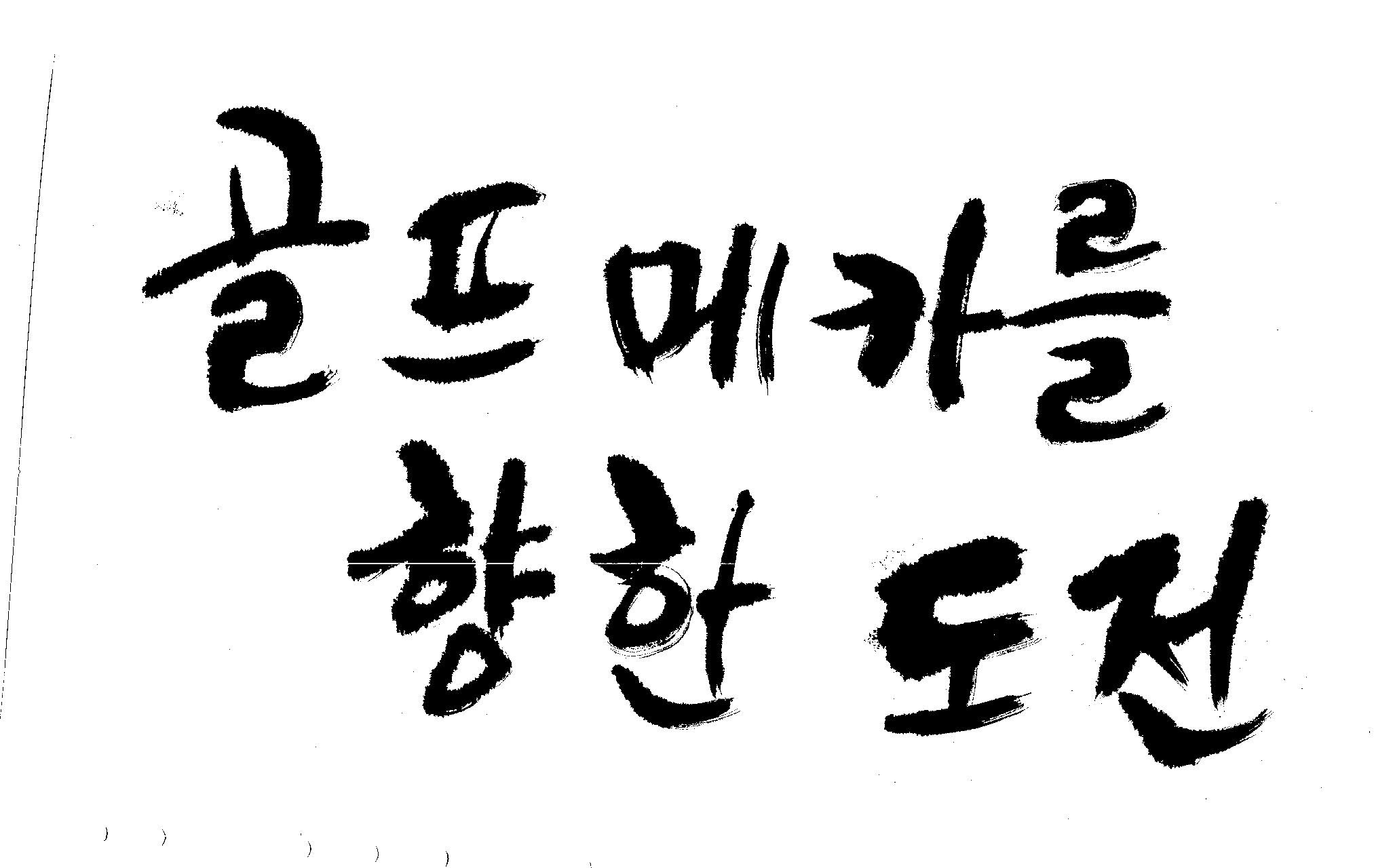 우경의 행복한 캘리세상-골프메카 김철호 일반 0 8369 2009.07.18 10:26 > > 리듬감을 최대한 살리고 ㅡ 스포츠의 운동감과 밝음 > 기교섞인 획을 배제--일반적인 느낌 > 굵기변화를 통하여 도전 낱말을 강조 > 스타일은 비슷하지만 ...한 사람이 썼으니까 ㅎㅎㅎ > 서로 다른 글꼴을 올린 것은... 비교하여 보시고... > 편집자에게 선택권을 주는 것입니다 >
